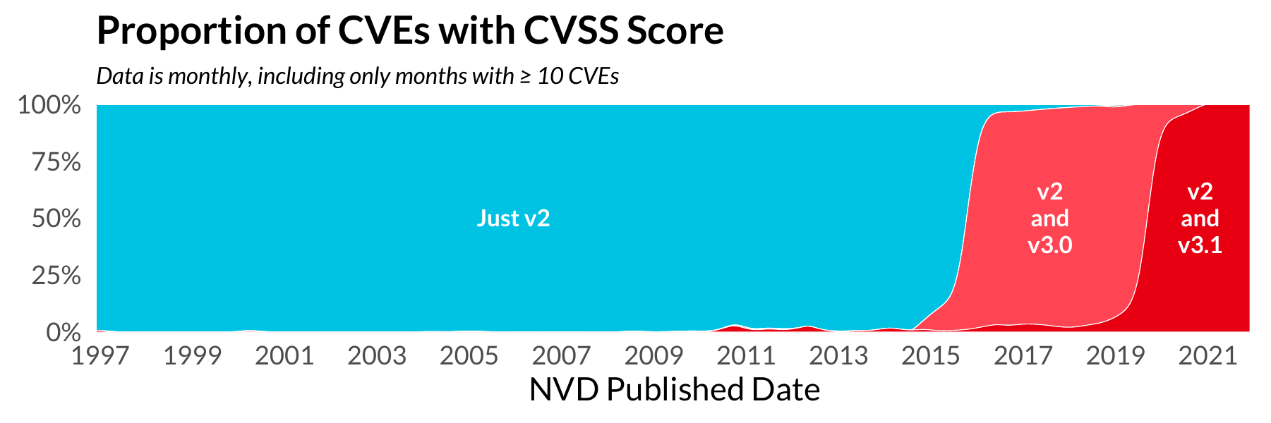In order to successfully provide scores for older vulnerabilities it was necessary to have complete data on all of those old vulnerabilities. A key piece of that data is the CVSS v3 metrics. The vulnerability assessments provided by CVSS v3 are only available mostly for vulnerabilities created after 2015.