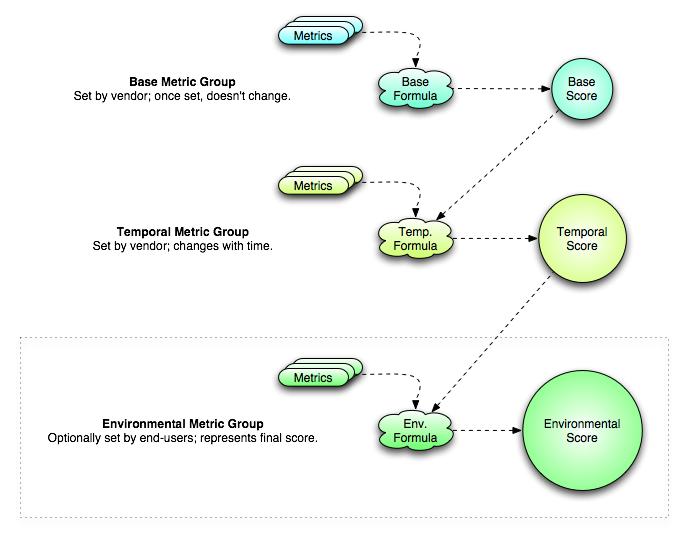 Environmental Scoring is optionally computed by end-user organizations and adjusts combined Base-Temporal score. This should be considered the FINAL score and represents a snapshot in time, tailored to a specific environment. User organizations should use this to prioritize responses within their own environments.